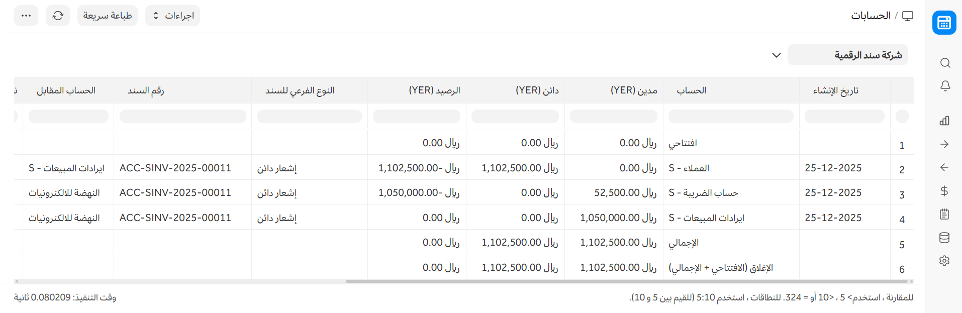 1.1 كيف يؤثر الإشعار الدائن على دفتر الأستاذ