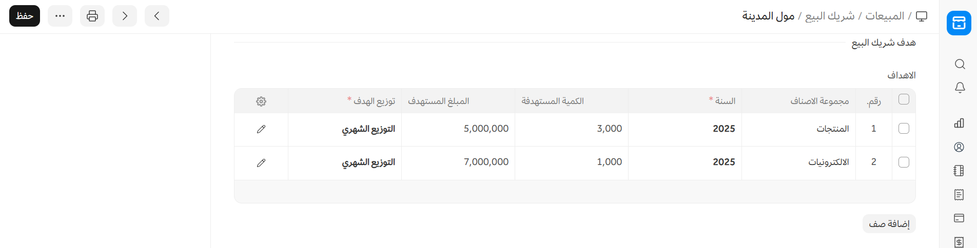 يمكنك تخصيص أهداف لكل مجموعة ًأصناف ومنطقة، بناءً على الكمية والمبلغ. يمكنك تخصيص الأهداف حسب المنطقة أو حسب الشهر.