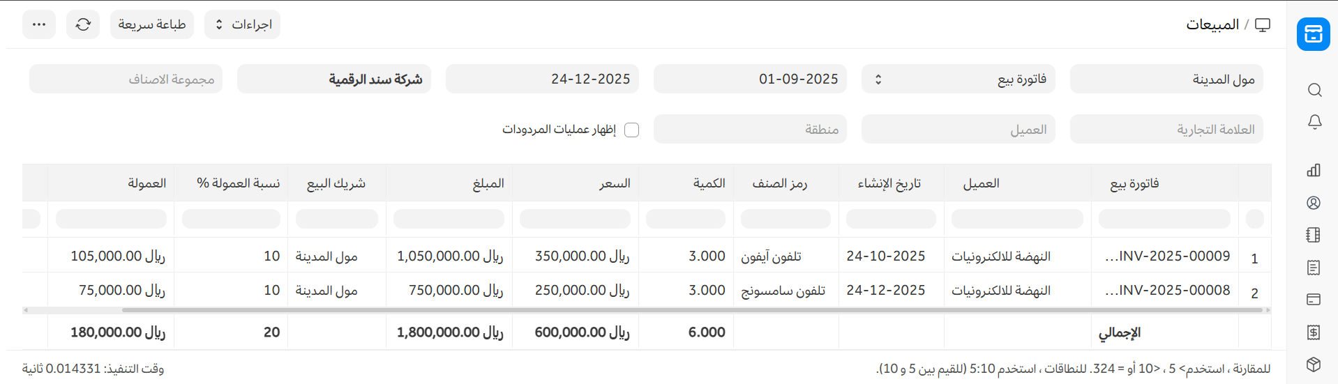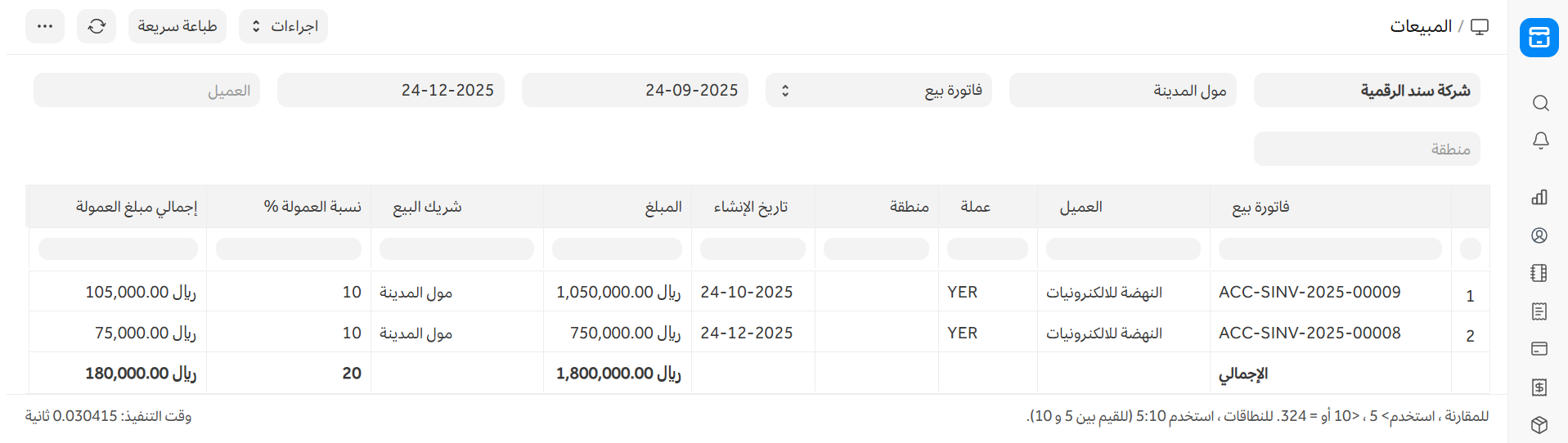 للحصول على بيانات عمولة شريك البيع حسب أمر البيع أو فاتورة البيع أو مذكرة التسليم.
