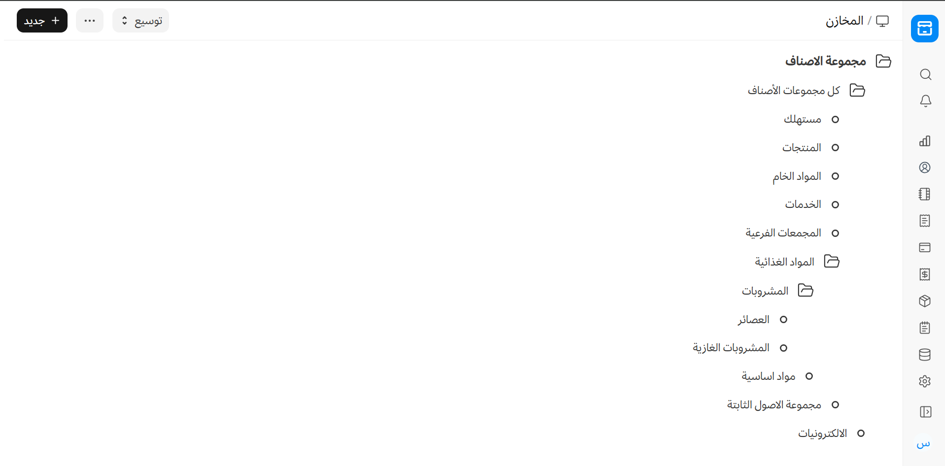 هكذا يتم عرض مجموعات الأصناف على شكل شجري (هرمي) توضح العلاقة بين المجموعات الرئيسية والفرعية.