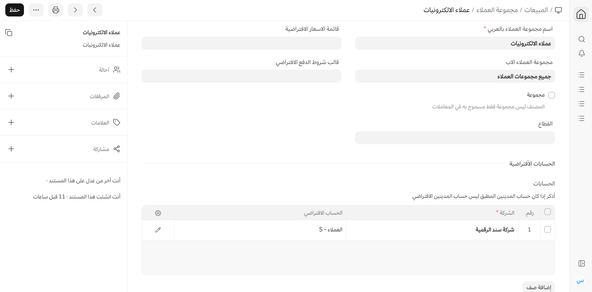 إذا كنت تحتاج إلى حساب مدينة منفصل لعميل، يمكنك إضافة ذلك في قسم "الحساب المدينة الافتراضي".