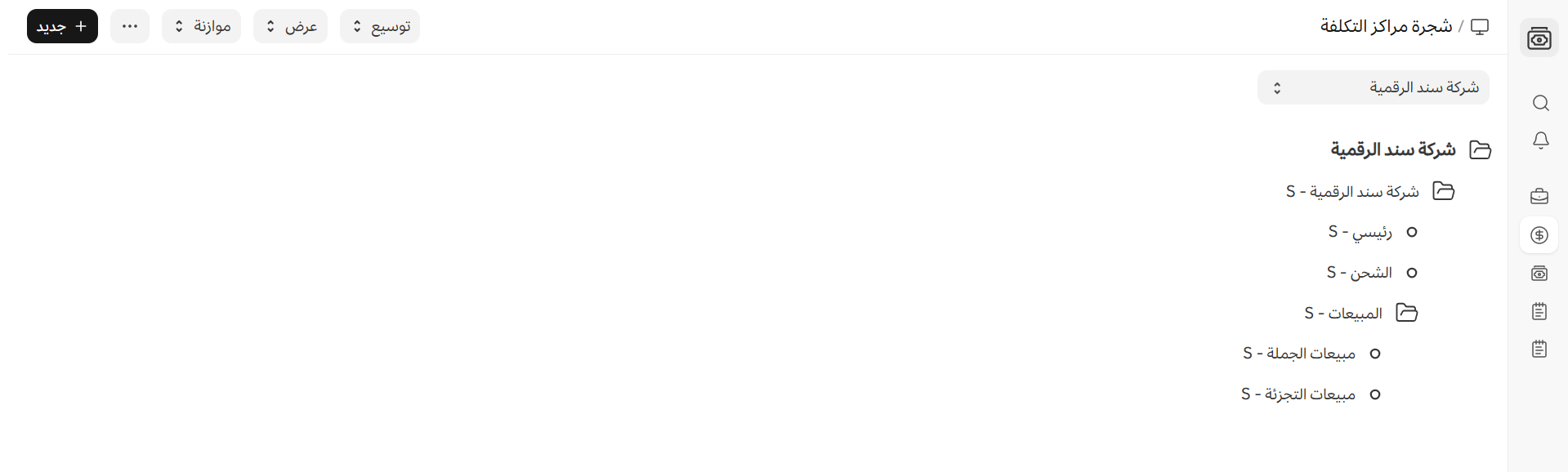 الصفحة الرئيسية > الحسابات > الموازنة ومراكز التكلفة > شجرة مراكز التكلفة