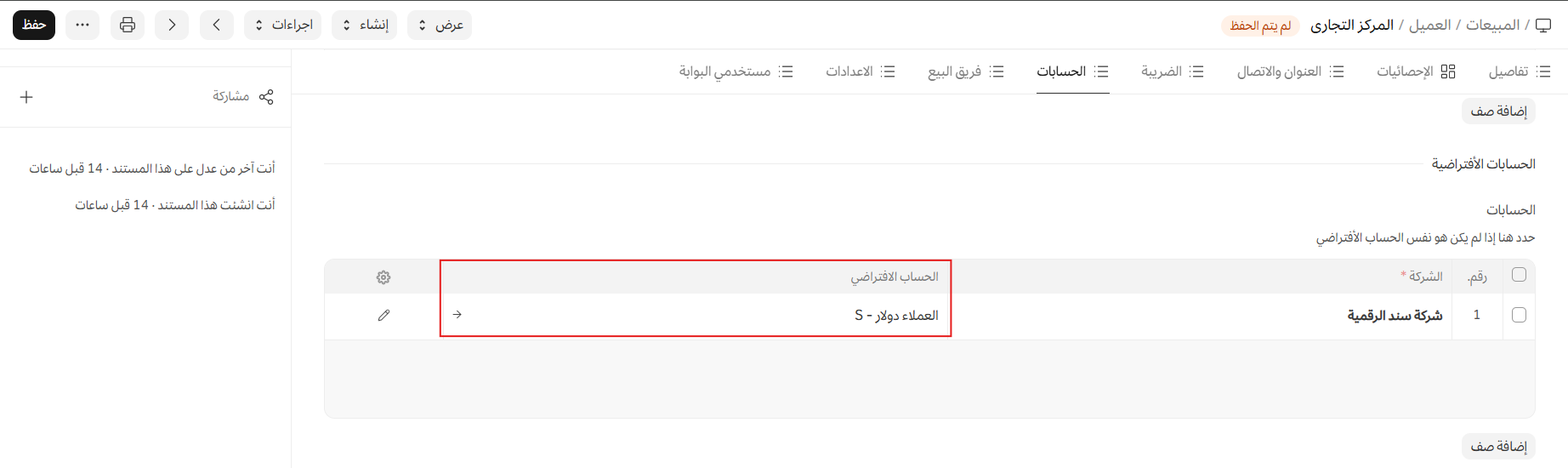 ملاحظة: يجب إنشاء حساب عملاء/موردين منفصل وتحديده في فاتورة البيع/الأمر لكي يعمل صرف العملات بشكل صحيح. على سبيل المثال، إذا كان العميل من الولايات المتحدة، فقم بإنشاء حساب عملاء باسم "عملاء بالدولار الأمريكي".